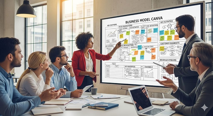 Desenvolvido pelo consultor suíço Alexander Osterwalder, o Canvas é uma metodologia gráfica para esboçar modelos de negócio de forma visual e estratégica. Define “a lógica de como uma organização cria, entrega e captura valor”.